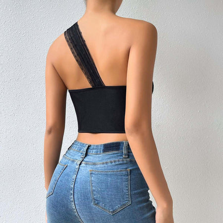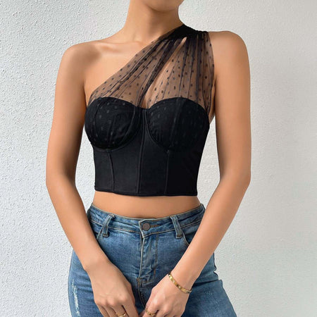 Rosalie Silk Embroidery Mesh Bustier - Black