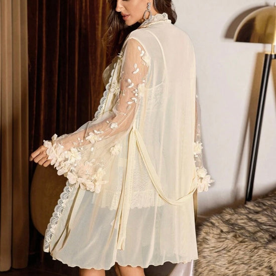 Vespera Silk Lace Floral Sleepwear + Robe - Champagne