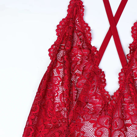 Tulum Lace Mesh Bodysuit + Skirt - Red